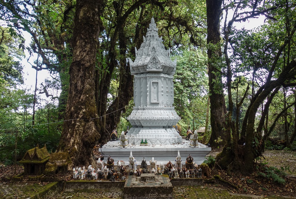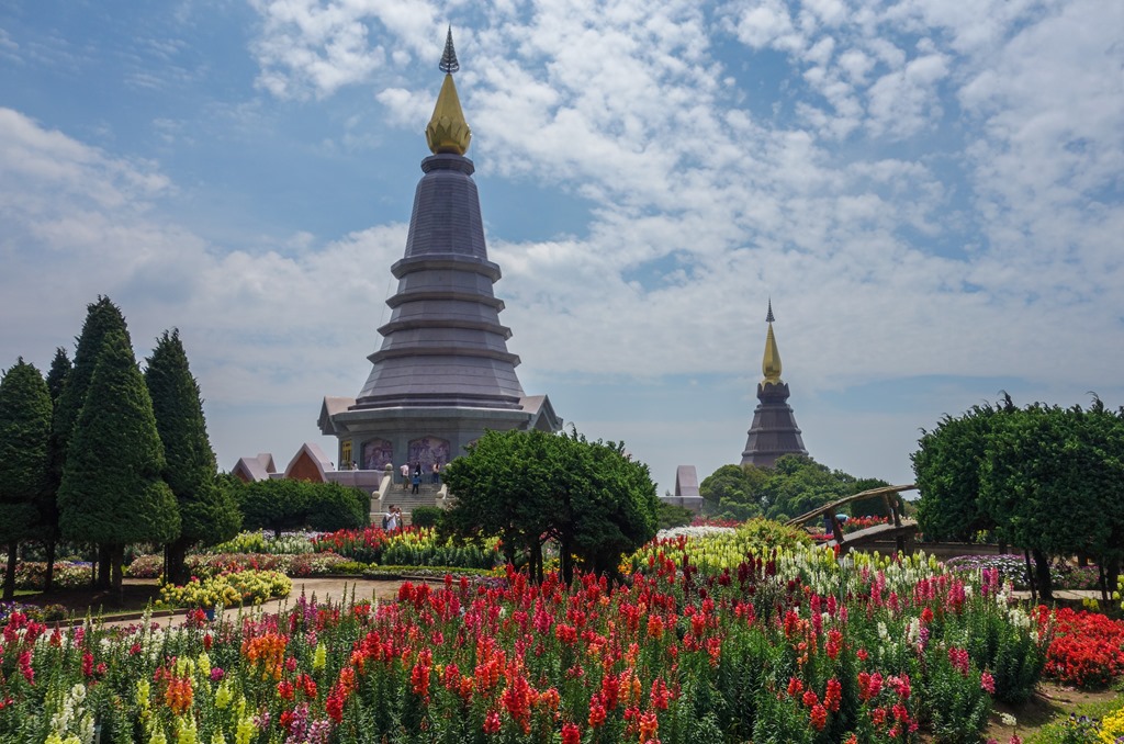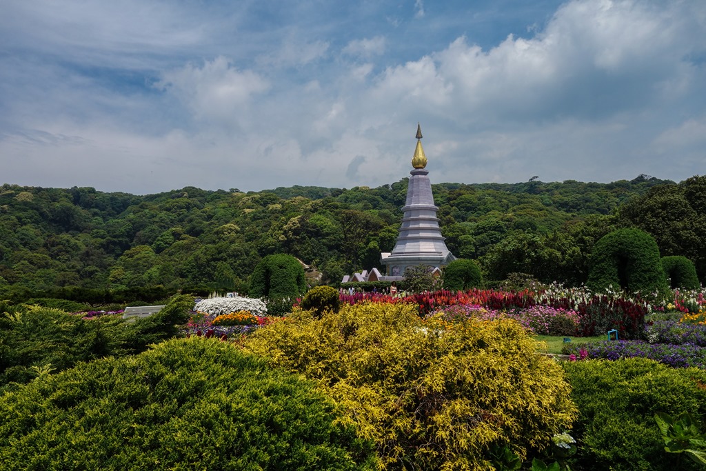 A few hundred metres below the actual high point, two monuments were built to commemorate the birthdays of the King and Queen of Thailand. The monuments are frankly a bit cheesy, but from the right angle there is no denying that they can look really good in a Disney animated feature sort of way: