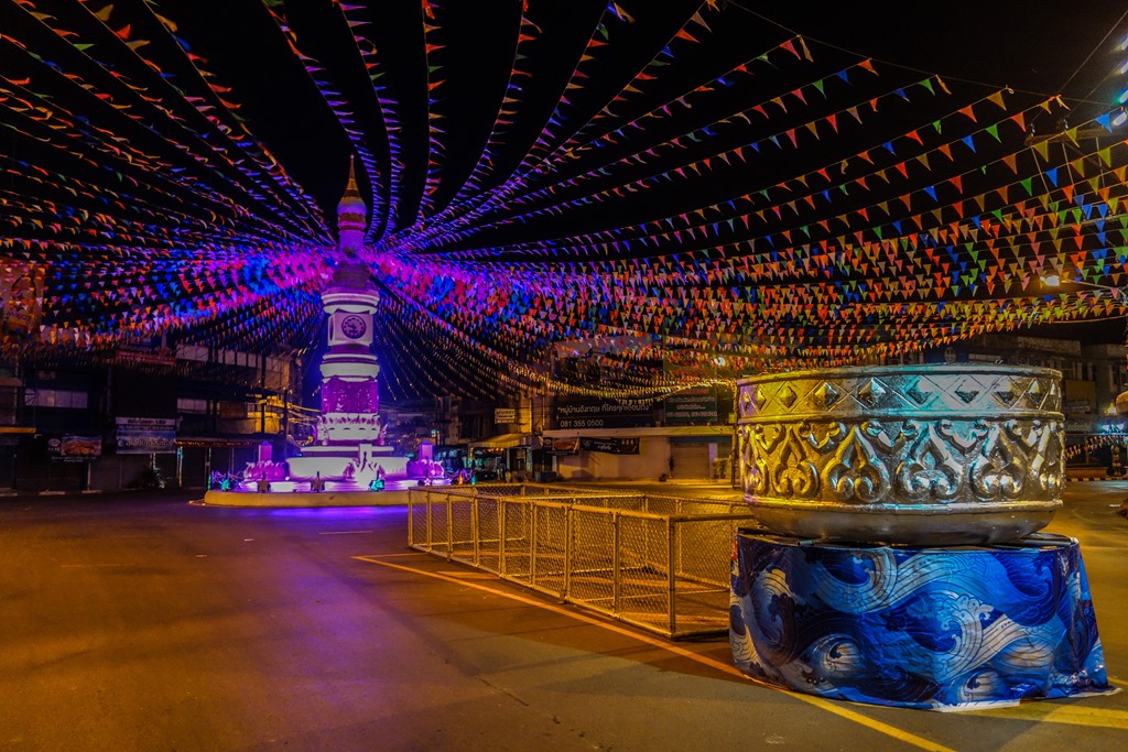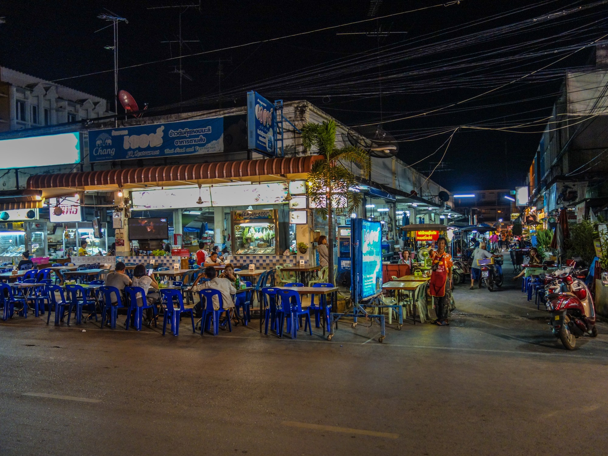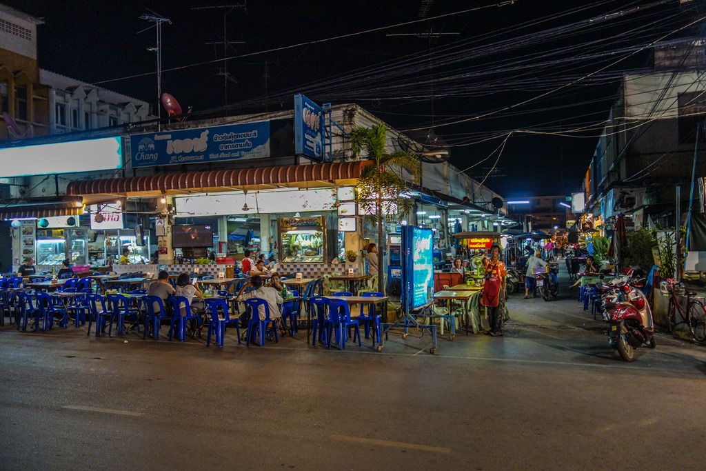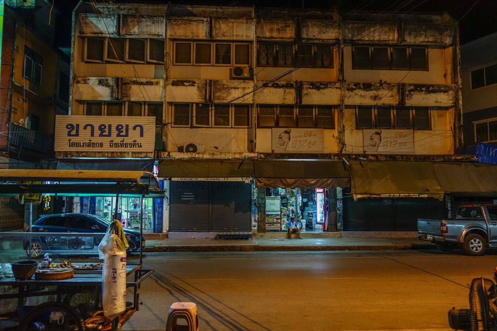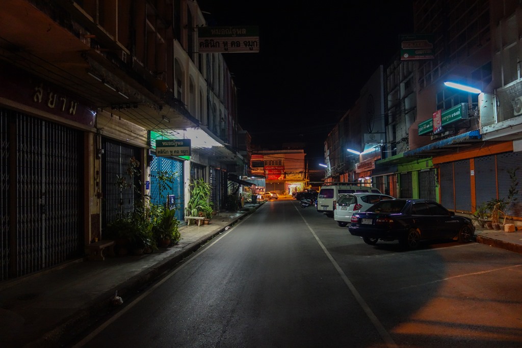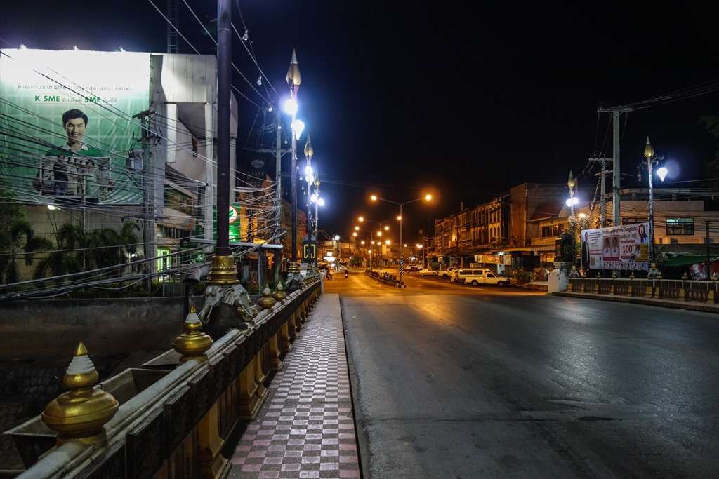 I had an unremarkable dinner (for Thai standards, given that I ate incredibly well everywhere in the country) and afterwards I explored the empty streets to do a bit of night photography. These shots will give you a sense of how quiet the town gets at night. Though I should note, the the streets are JUST busy enough that it doesn’t feel dangerous.