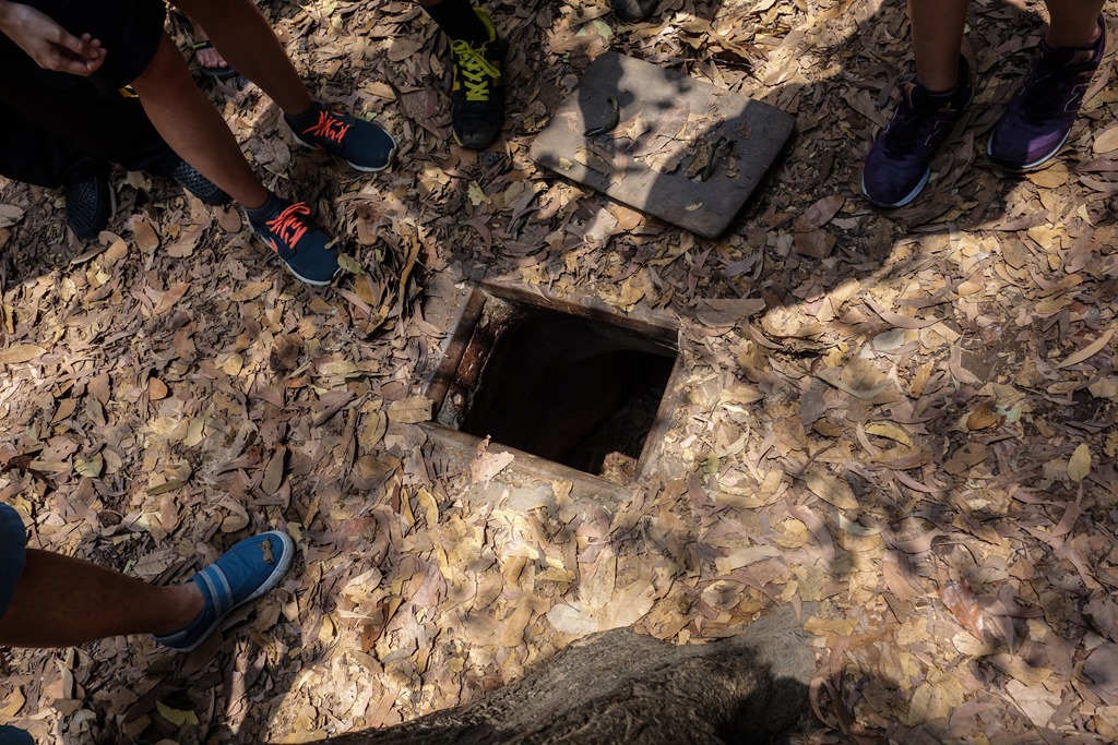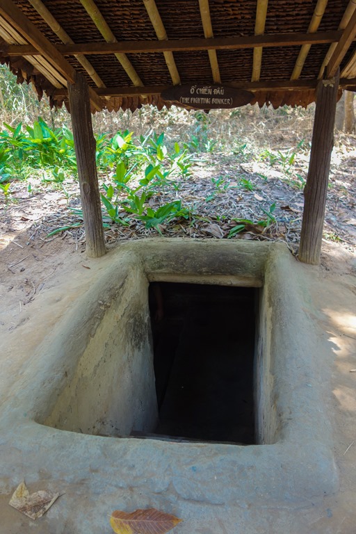 This will give you a sense of how tiny the entrances were. They have widened the entrances in the tunnels accessible to tourists but they’ve kept a few of the original entrances in tact. They are so narrow that most westerners have to lift their arms above their heads to make it inside. When you put the cover back on and scatter some leaves on top, the entrances are impossible to spot.