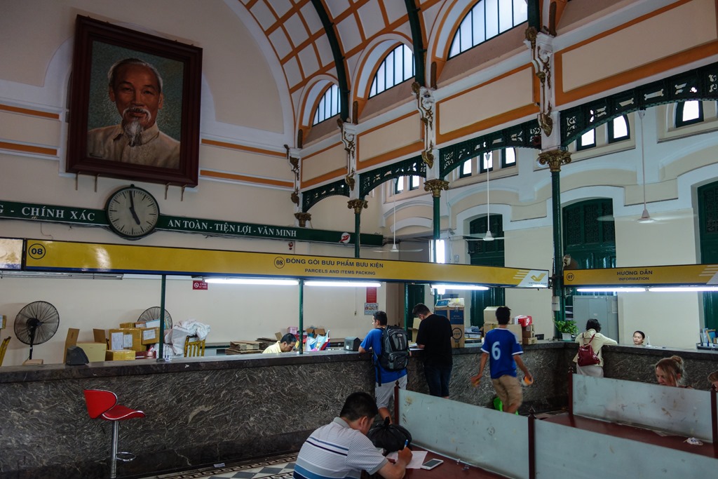 Next I ventured over a few blocks to the Saigon Central Post Office. I loved the building, probably the highlight of my day, unfortunately the pictures do not do the place justice: