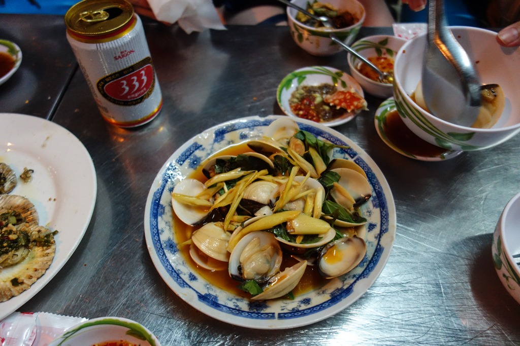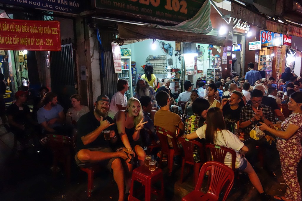 One of the known highlights of Vietnam is the Bia Hoi. Bia Hoi bars typically brew their own light beer, serving it fresh, with no preservatives, ice cold and crazy cheap. Even in the most expensive district in Saigon, you can get a glass of fresh beer for 58 cents, and in Hanoi I saw plenty of places selling it for 28 cents a glass. But the real point of going to these bars is the atmosphere; they crowd you into these tiny little tables with plastic tables and chairs, and every couple of minutes someone will raise their glass, and yell out “Mot, Hai, Ba, YOOOO!!” (one, two, three, cheers!) and everyone will join along. The food in some of these places can also be incredibly cheap and delicious. Since they only make money through volume, you may have a hard time finding a seat if you are travelling alone. The first bar I went to, even though it was almost empty at the time, refused to seat me because presumably they wanted to seat four people at the table. The place across the street did accommodate me, but in a table hidden way off in a corner. As soon as the seating filled up they kicked me out of my table and seated me with the closest western people with an open seat at their table. Ultimately not a bad thing, I met a really nice couple from the U.S. that way: