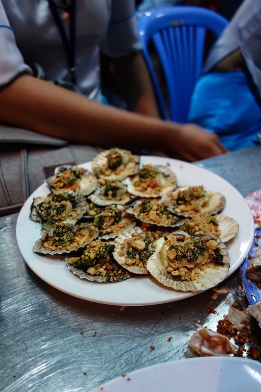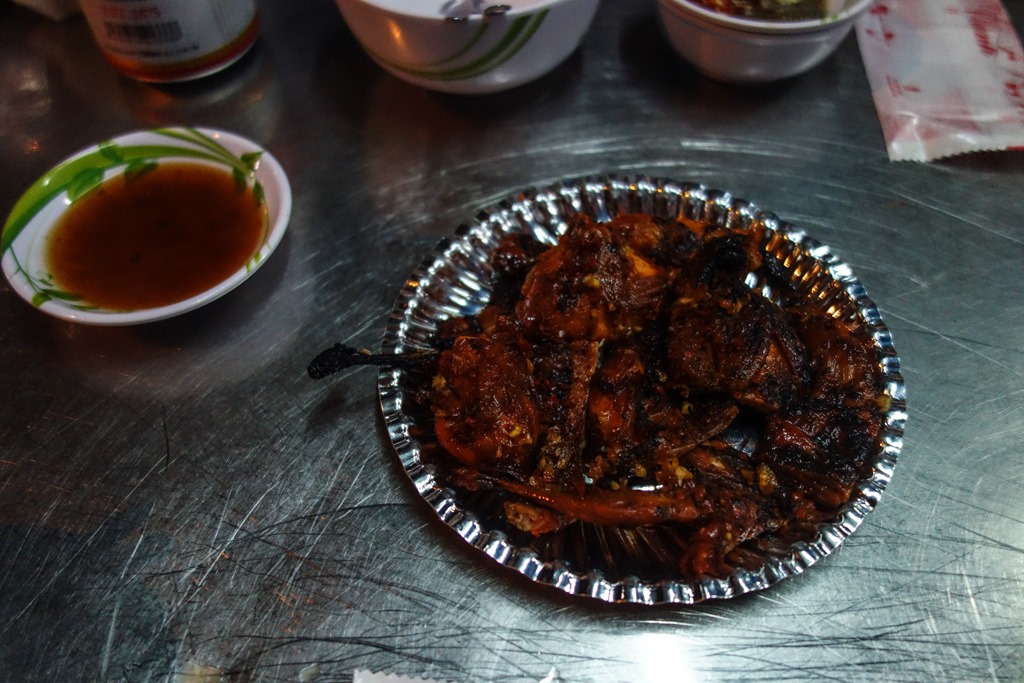 Our final stop for the night was a seafood restaurant in District 4, the poorest district in the city. We started with quail dipped in a tamarind sauce: