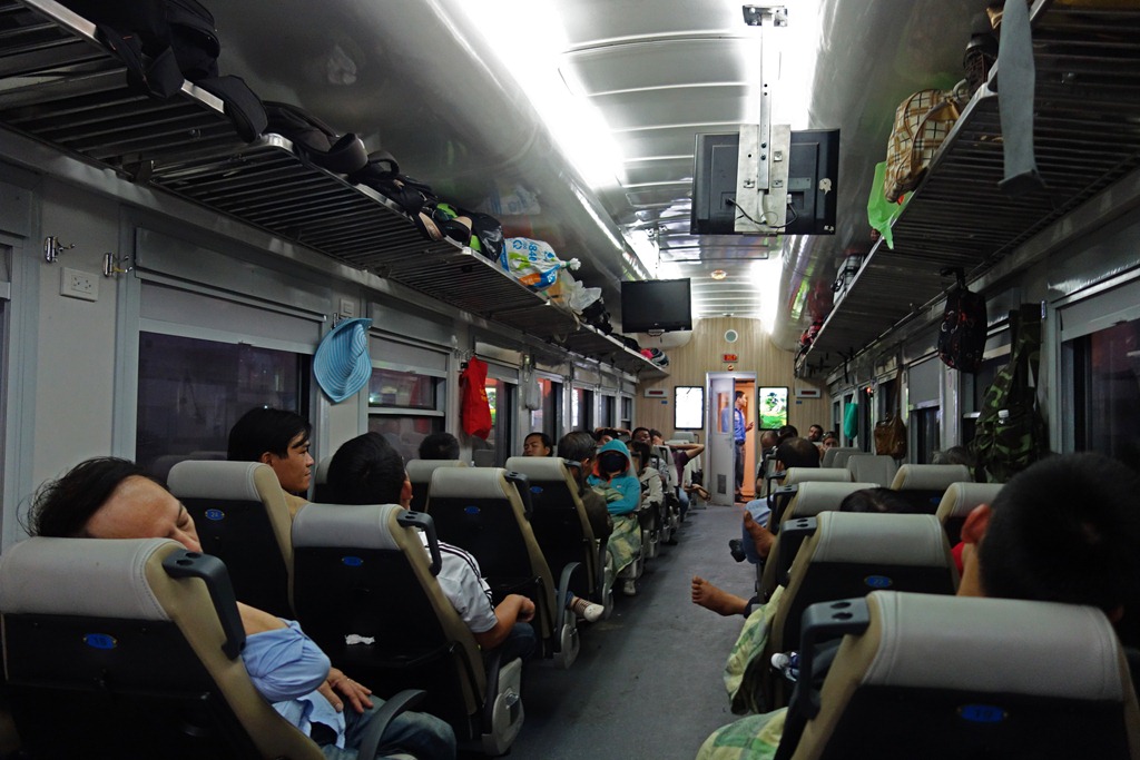 My next destination was the lovely town of Hoi An.  From Nha Trang, I took a train to the city of Da Nang, from there it’s a 20-30 minute cab ride into Hoi An.  My verdict on the train is that it was comfortable enough, but the tracks in Vietnam are pretty rough, so the train shakes around more than is the norm.  A picture of the soft seating car: