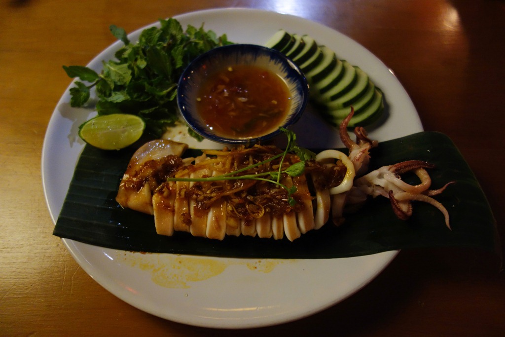 My second dish, an extraordinary squid in a mango chili sauce: