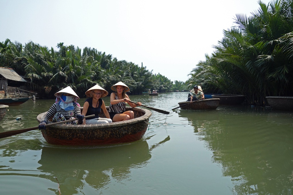 That’s me in a round boat.  I was told that the purpose of the round boats is to easily navigate narrow canals where turning around on a boat would prove difficult.  I’m not too sure about that especially given that the boats are horrendously unstable and paddling them is even worse.  I saw some locals manage to paddle one on their own, but it looked awkward.  Paddling it with two people is not much better—since the boat is round the two paddlers have to be perfectly synchronized in terms of speed and strength of pulls.  Any variation between the two, and the boat spins around: