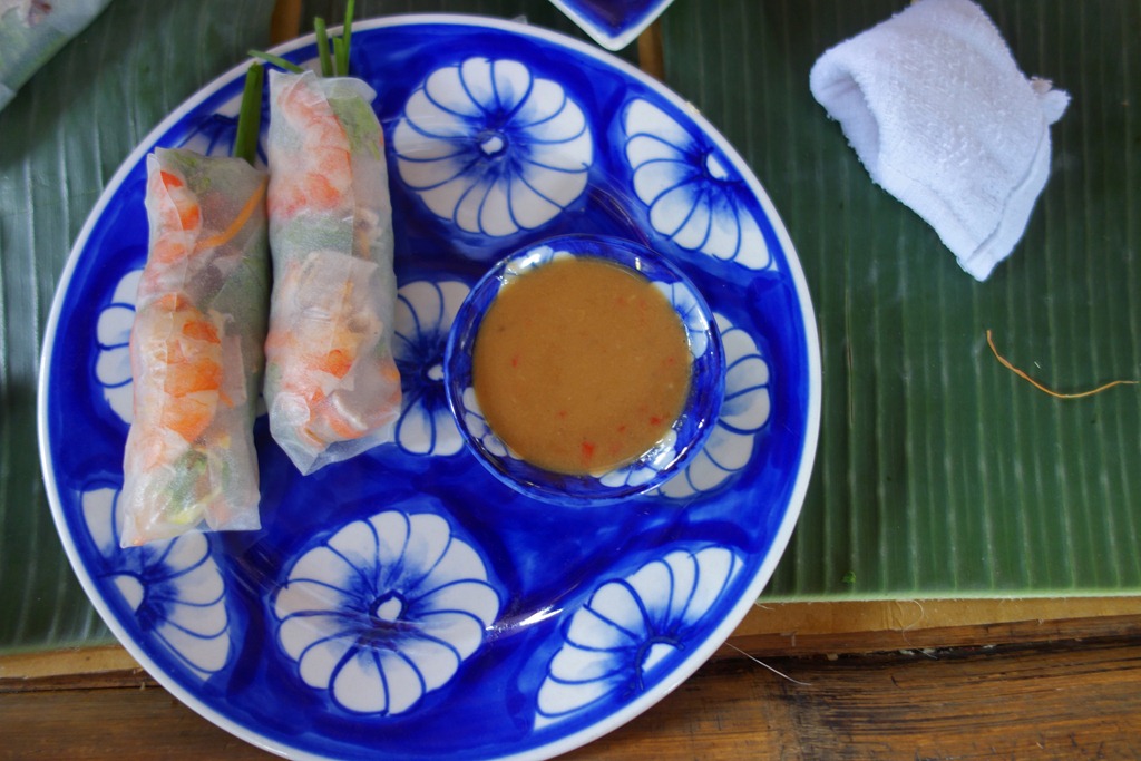 I started by making some fresh spring rolls with shrimp and the peanut dipping sauce.  This was not as hard as you would imagine.
