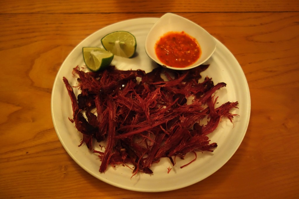 For a starter I picked the water buffalo jerky served with lime and a chili sauce: