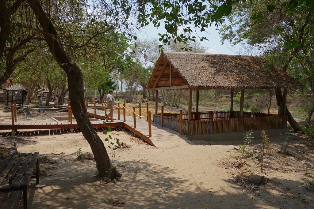 For example, grass roofed enclosures like the one pictured below signify a mass grave, where upwards of 500 people were executed and buried: