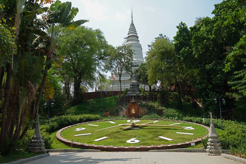 The following day I rented a motorbike and checked out the main sites in the city. Wat Phnom is pictured below, the actual stupa is hard to photograph because all of the greenery surrounding it, but I liked the huge clock in the grass (though aesthetically not exactly classy).