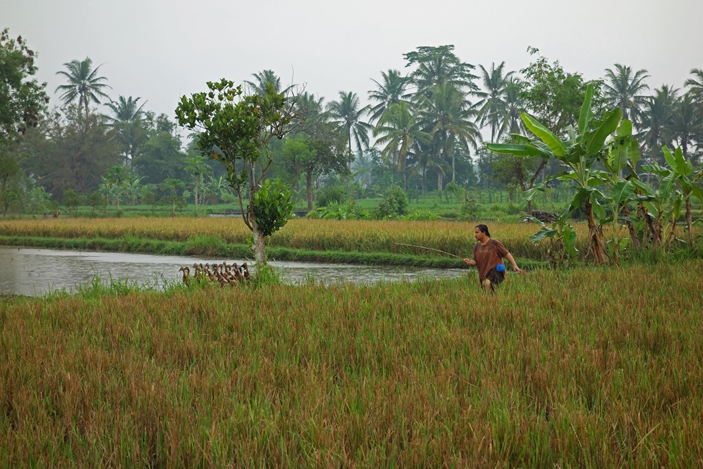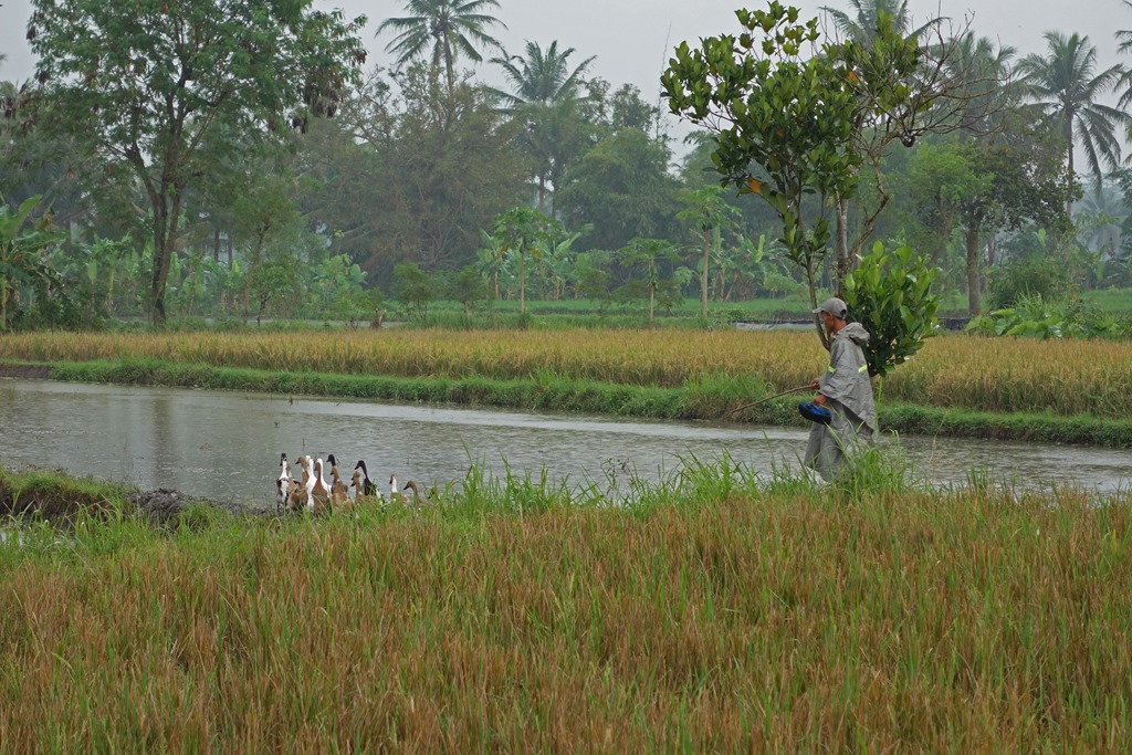 I was on my way up a mountain to check out a nearby waterfall when it started raining heavily. I took shelter in a nearby restaurant overlooking some lovely rice paddies and was able to spot some duck herders: