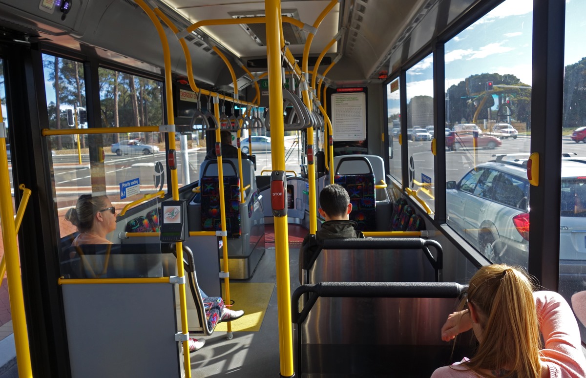 I hung around the zoo until 1:00 pm that day because I felt bad about leaving Bat in his cage all day. When I left, the first order of business was to go to downtown Perth to buy a couple of sweaters. Getting down there was pretty easy, the buses to the nearby LRT/subway come frequently and the ride down is very efficient. A shot inside one of the buses: