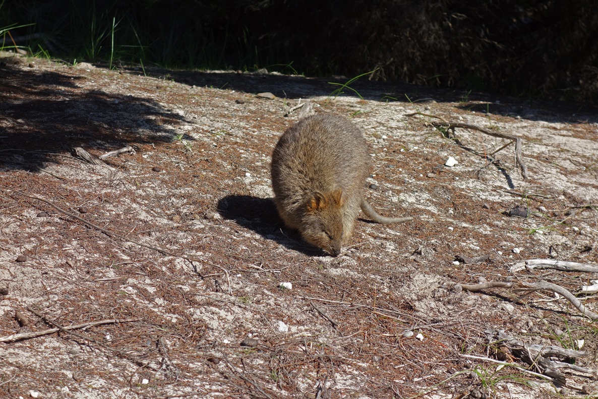 The resident marsupial of the island, the quokka. These little fellows are not at all shy, when I was subsequently in a seaside pub, one of these little guys made it inside and was just hanging out: