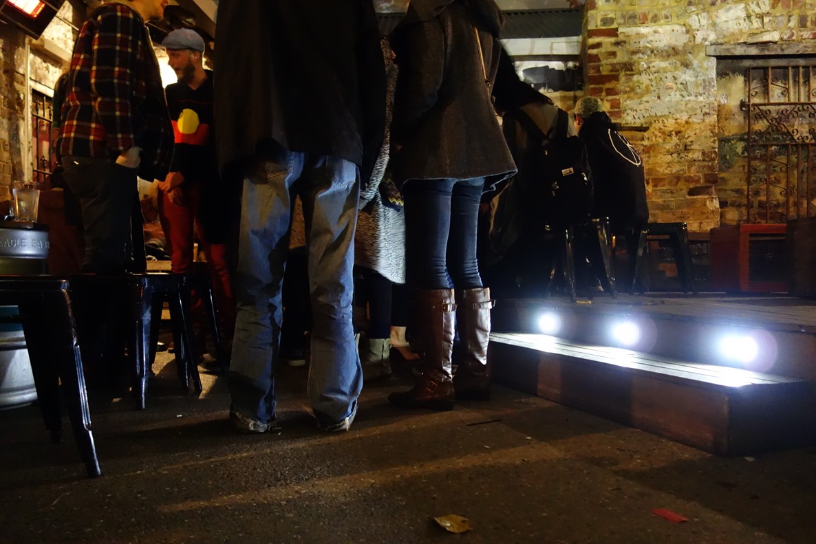At night, I took a bus, the subway and another bus to go to a live music venue called El Grotto in Scarborough to meet up with a local gal whose friends were playing a set there that night. The bar ended up being one of the few bargains I found in Perth with $5 sleeves and pretty decent tacos. A shot from El Grotto: